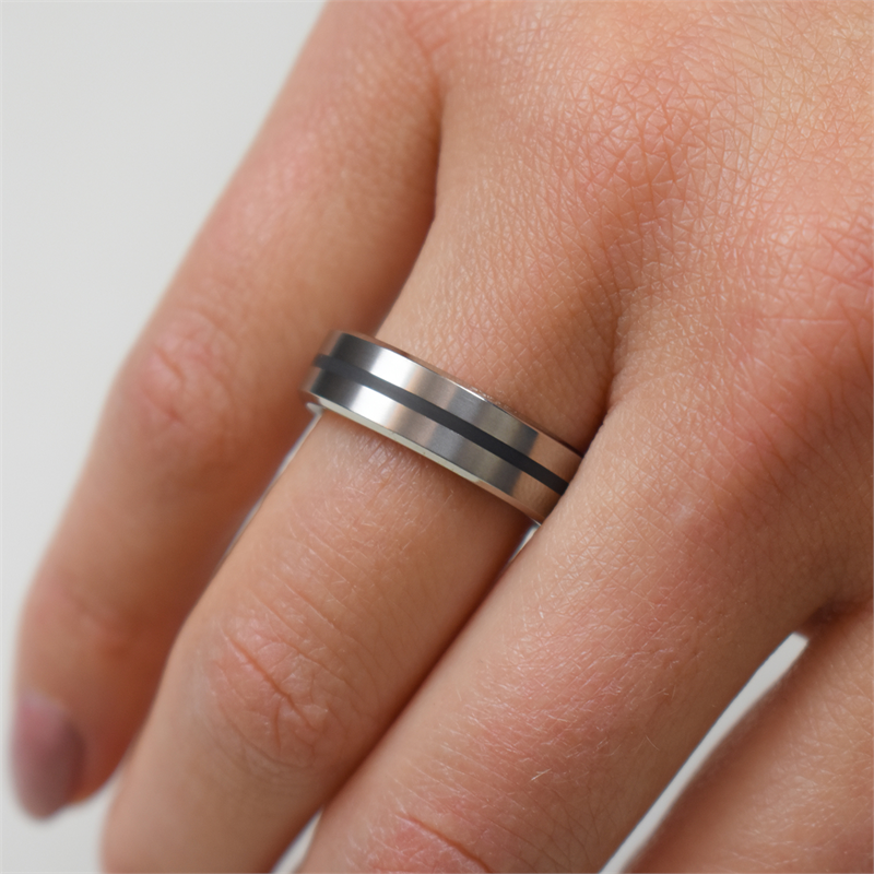 Boccia ring met een enkele zwarte baan | Titanium | maat 48 | 0101-1448
