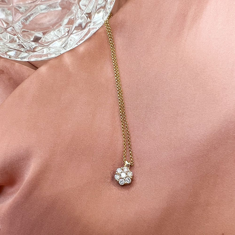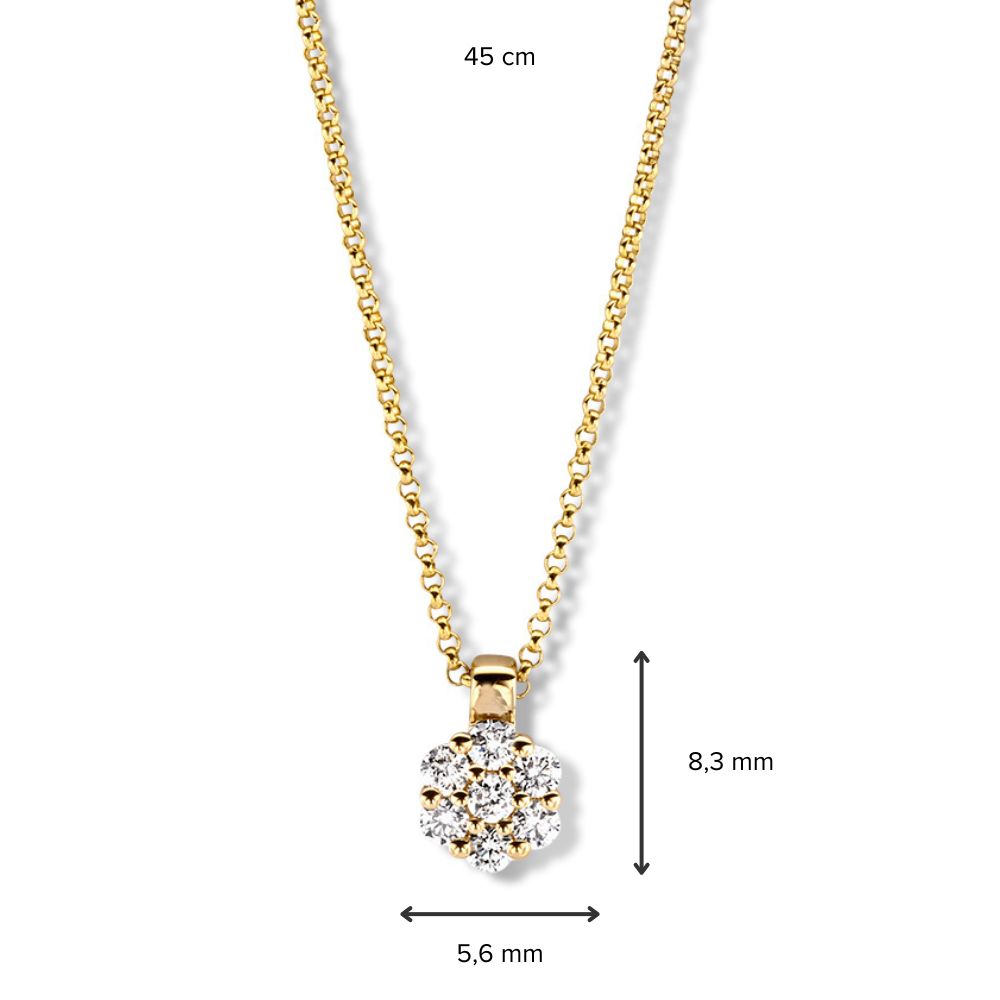Geelgouden collier met diamanten hanger in entourage zetting.