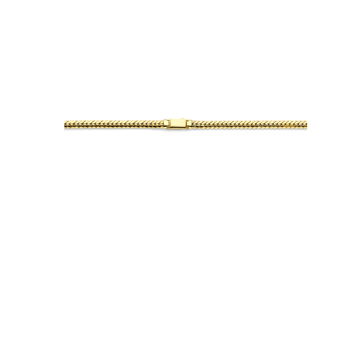 14k Geelgouden collier uitgevoerd met een gourmette schakel van 5mm. Het collier heeft een draaglengte van 43cm.