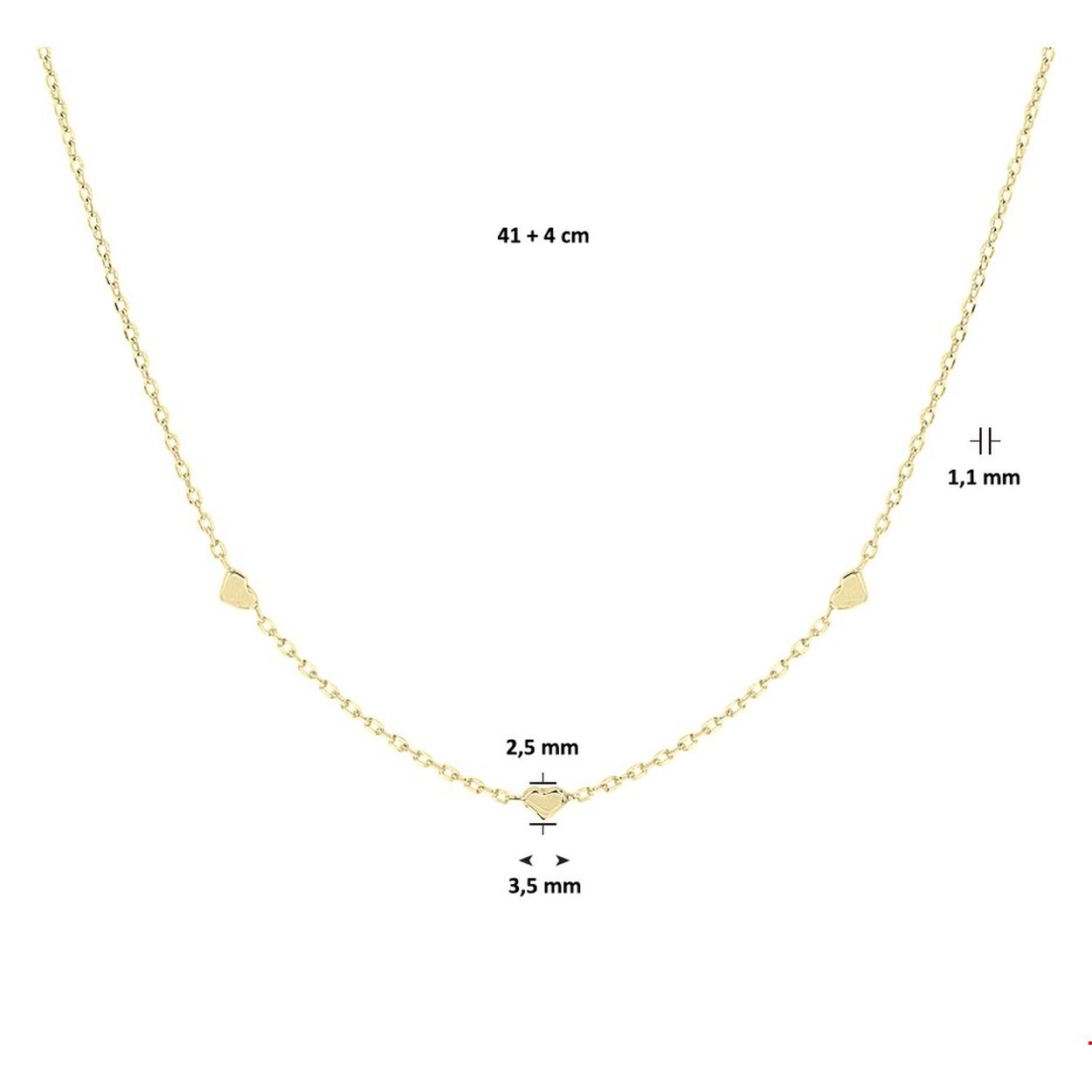 Trendy veguld zilveren anker collier uitgevoerd met 3 hartjes. Door de subtiele uitstraling kan het collier dagelijks gedragen worden en past deze bij veel verschillende outfits. Het collier heeft een draaglengte van 41cm en een extensie van 4cm.