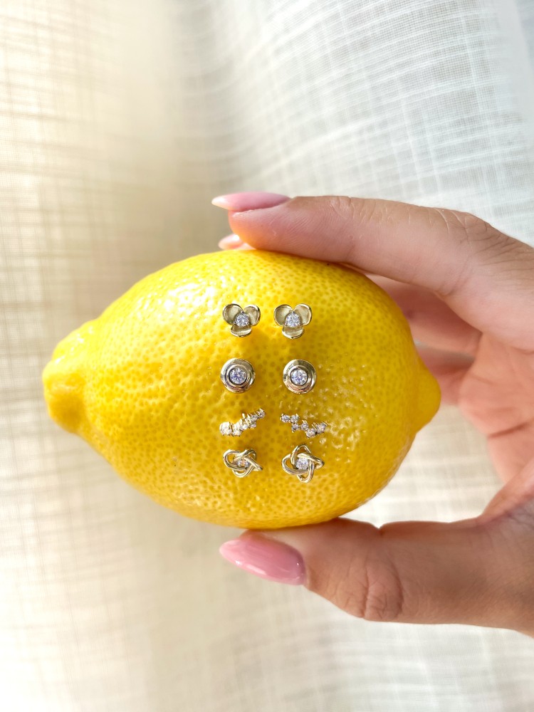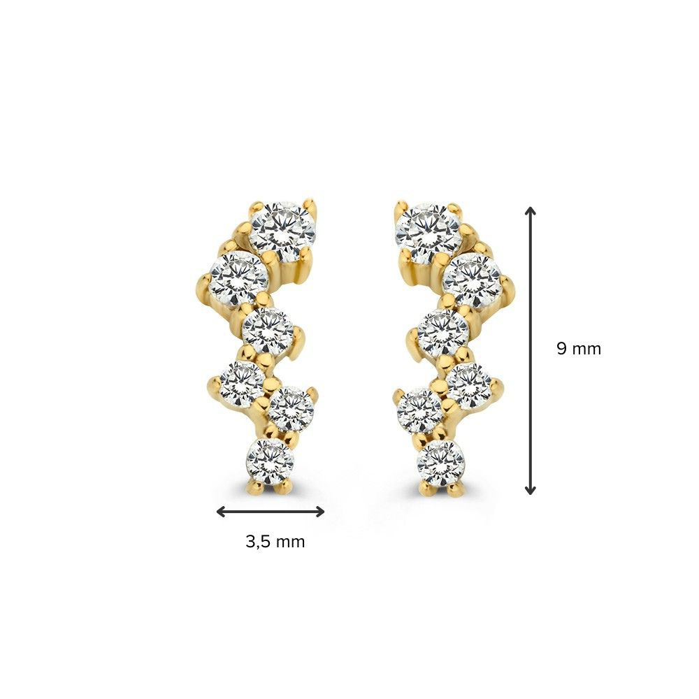 Excellent Jewelry geelgouden oorstekers met zirkonia's in speelse zetting.