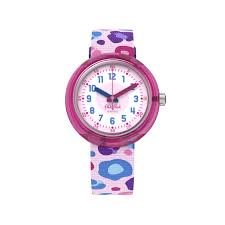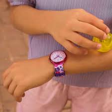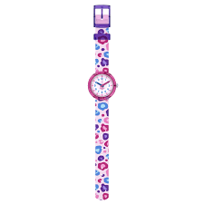 Het design met levendige luipaardprint op het educatieve horloge voor kinderen TIME TO ROAR zorgt voor opvallende kleuren, aangevuld met een roze transparente horlogekast en paarse gesp. Perfect voor kinderen die leren klokkijken, een leuk en speels cadeau!