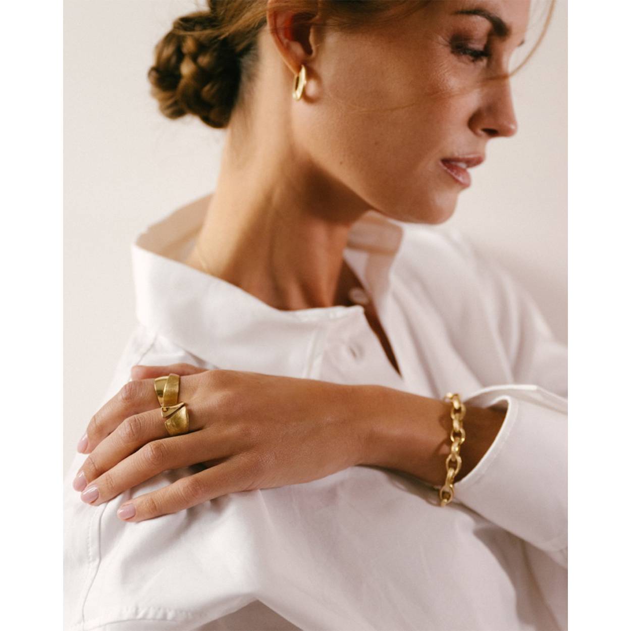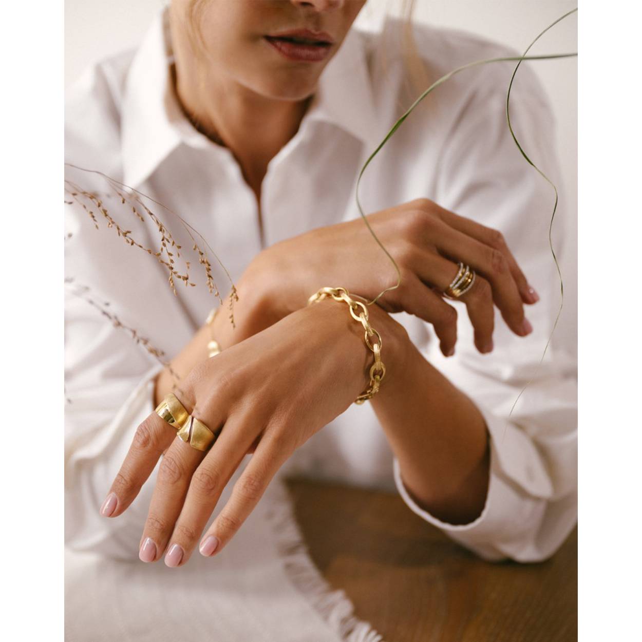 Stijlvolle geelgouden armband met ovale schakels. De schakels deels glanzend afgewerkt en deels gematteerd, een prachtig effect!