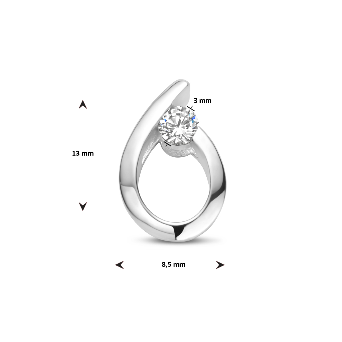 Zilveren hanger fantasie druppel zirkonia