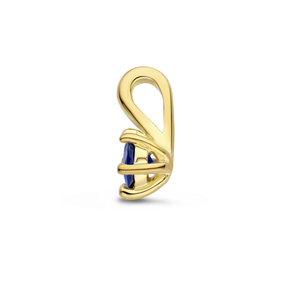 Zilver vergulde hanger met geboortesteen van september uitgevoerd met een schitterende blauwe saffier. De hanger heeft een afmeting van 10x5mm. Geen garantie op plating.