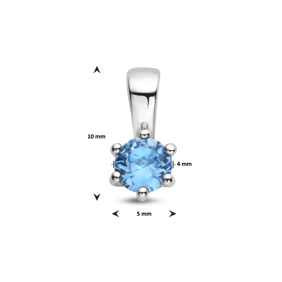 Gerhodineerd 925 zilveren hanger met geboortesteen uitgevoerd met een synthetische geboortesteen. De hanger heeft een afmeting van 10x5mm.