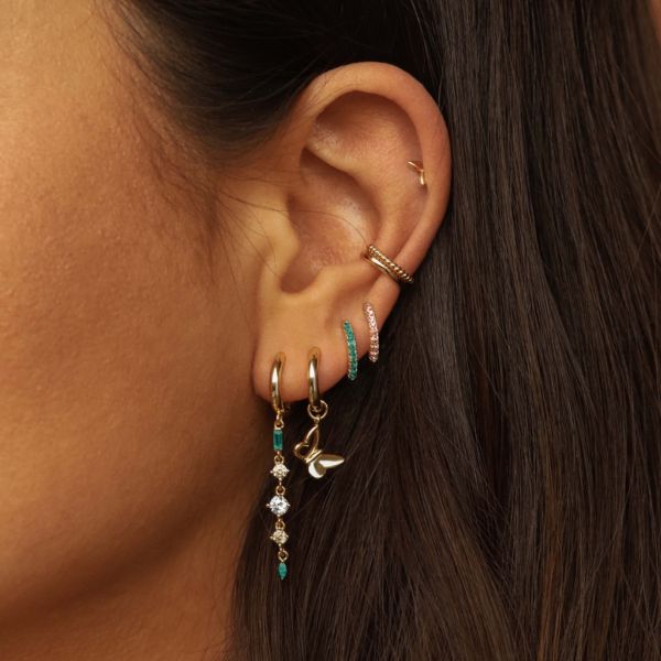 Karma oorringen LINA Chain Teal Blue | zilver verguld | zirkonia | A166_TB