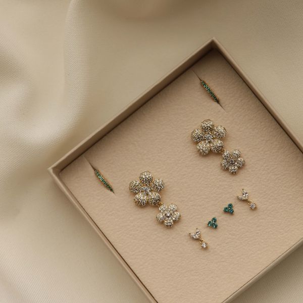 Karma oorstekers XL LILLIES Flower | zilver verguld | zirkonia's | X195GP