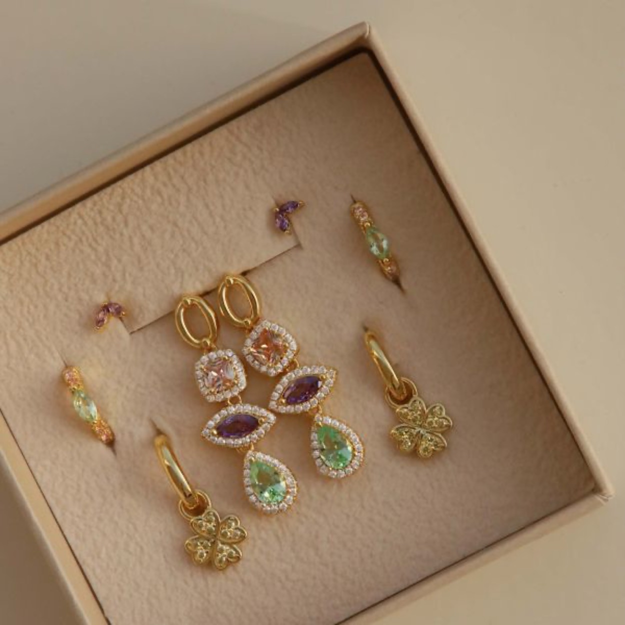 Dit zijn onze SPRING MOOD Oorringen met oceaan groen, roze en champagne zirkonia.