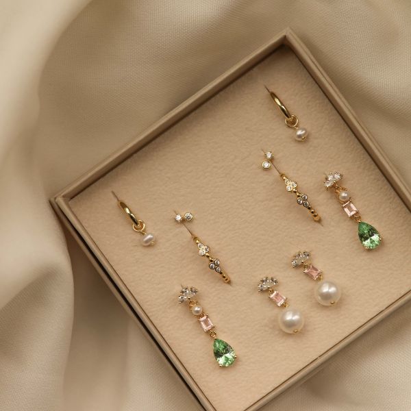 Karma oorstekers MISA zircona pearl green | zilver verguld | X199_G