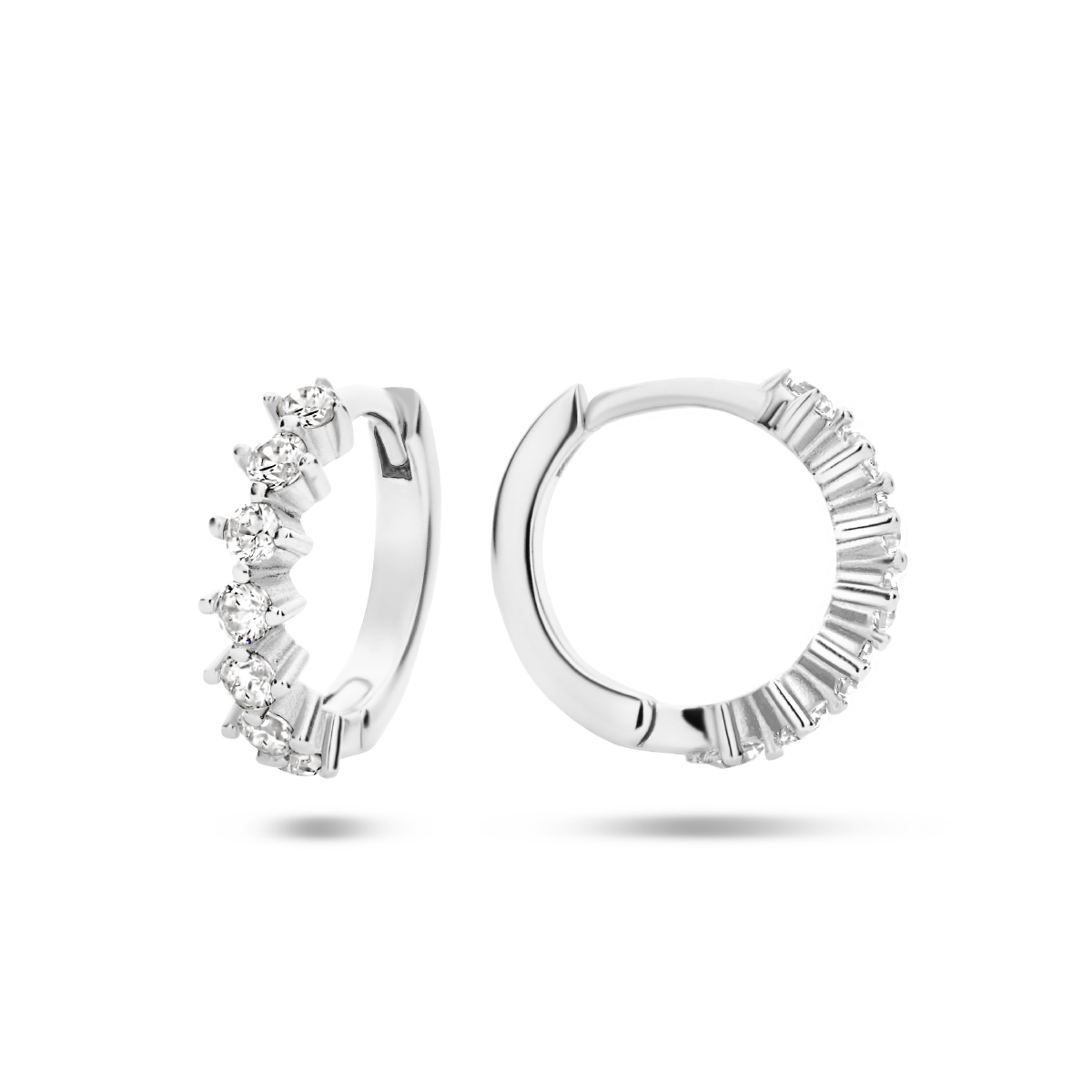 Gerhodineerd 925 zilveren klapoorringen uitgevoerd met schitterende zirkonia rij. De oorringen hebben een afmeting van 12.5x3mm.
