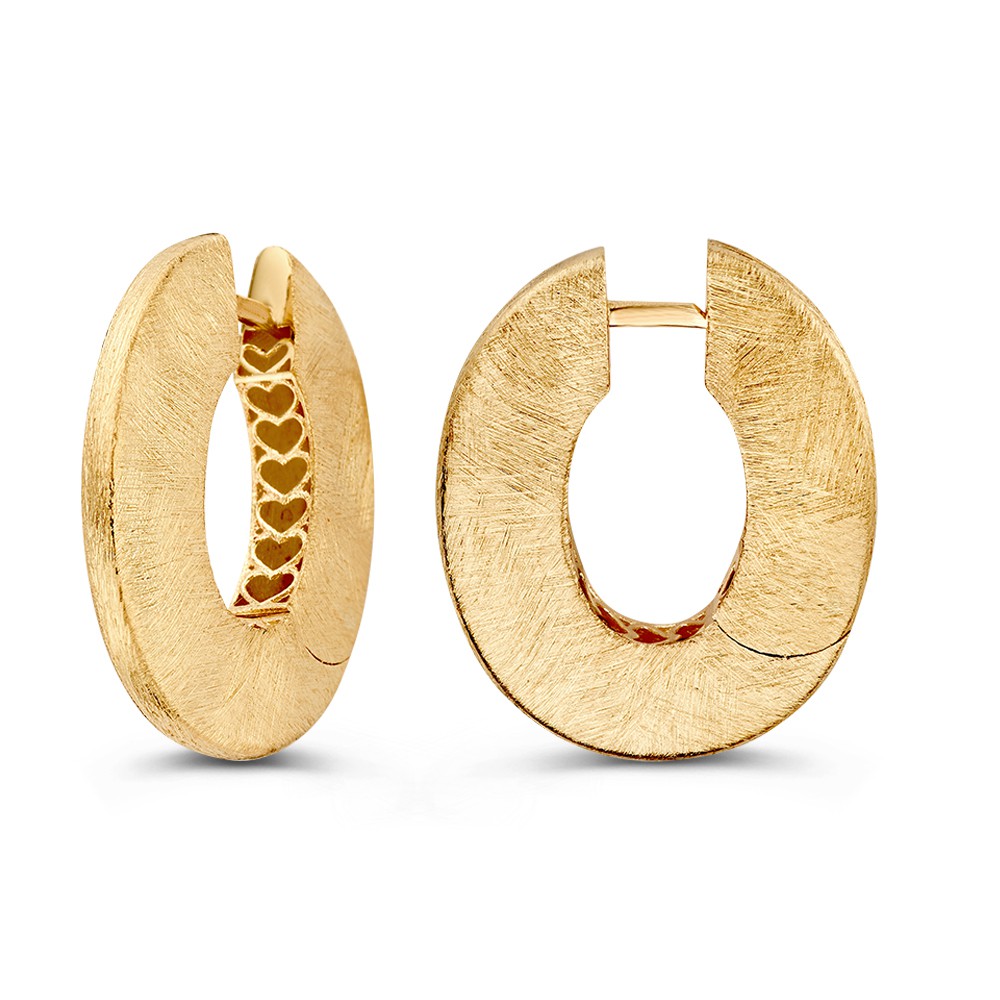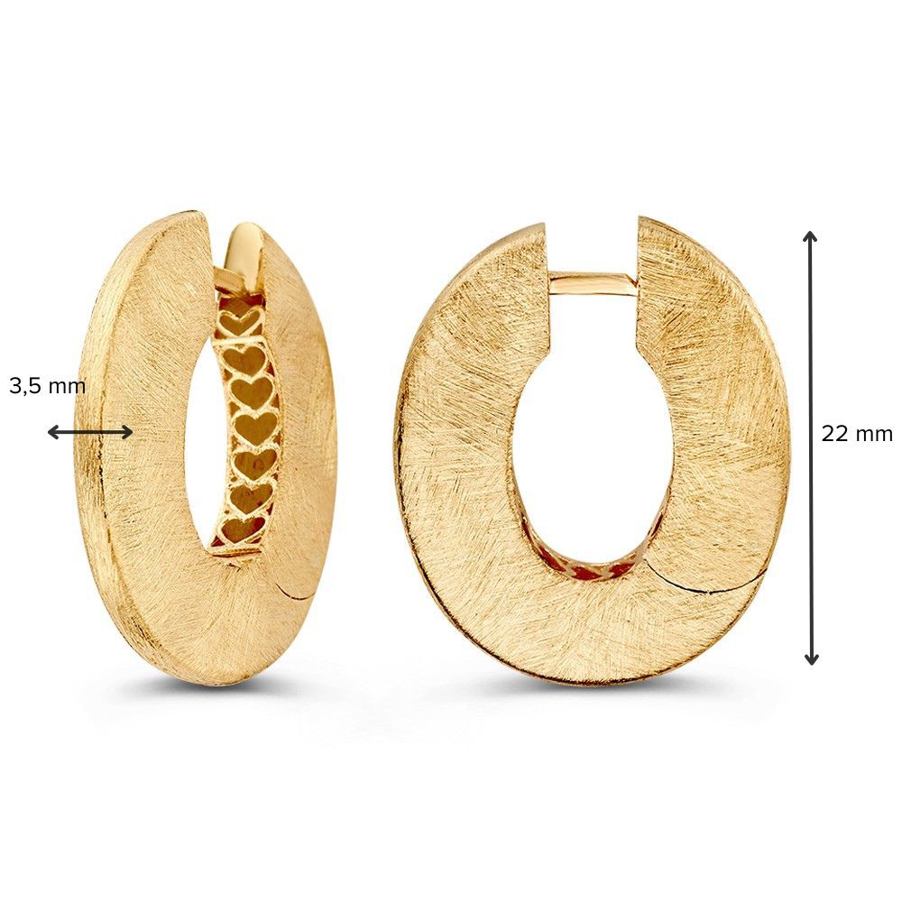 Geelgouden gematteerde oorbellen met ijsmatte afwerking in opvallende design.