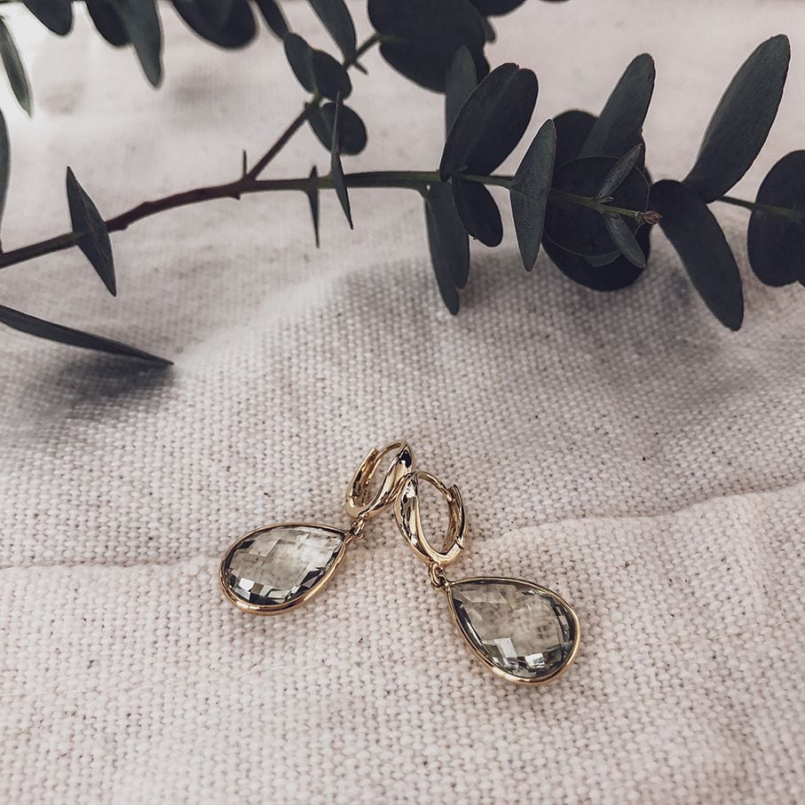 Geelgouden Excellent Jewelry oorhangers met groene amethist