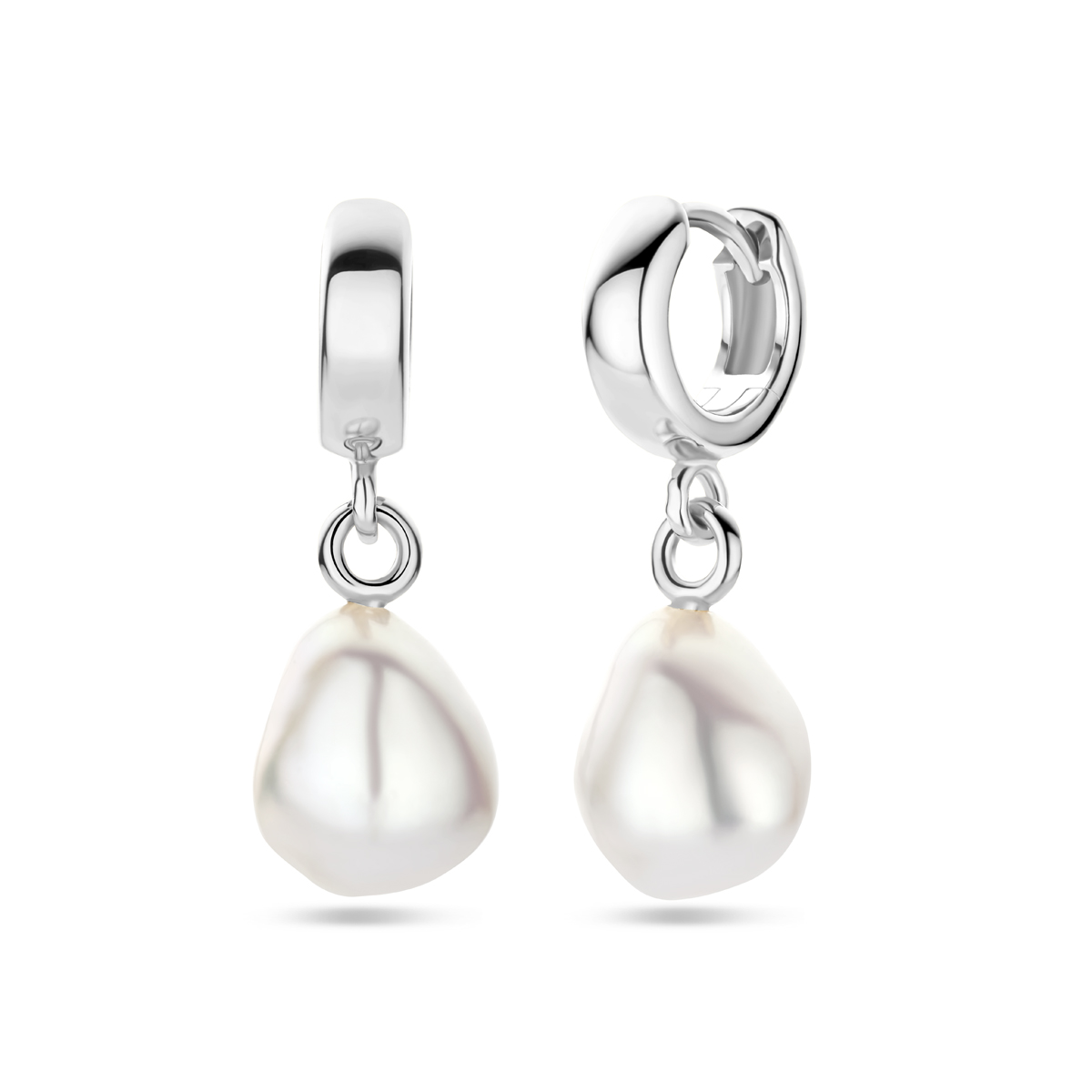 Gerhodineerd 925 zilveren oorringen uitgevoerd met parel. De oorringen hebben een totale hoogte van 26mm.