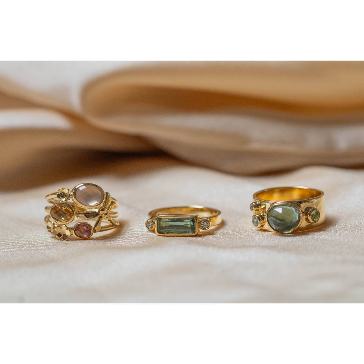 Zilveren Rabinovich ring Dragonfly met rozenkwarts, citrien en roze topaas. Maat 54