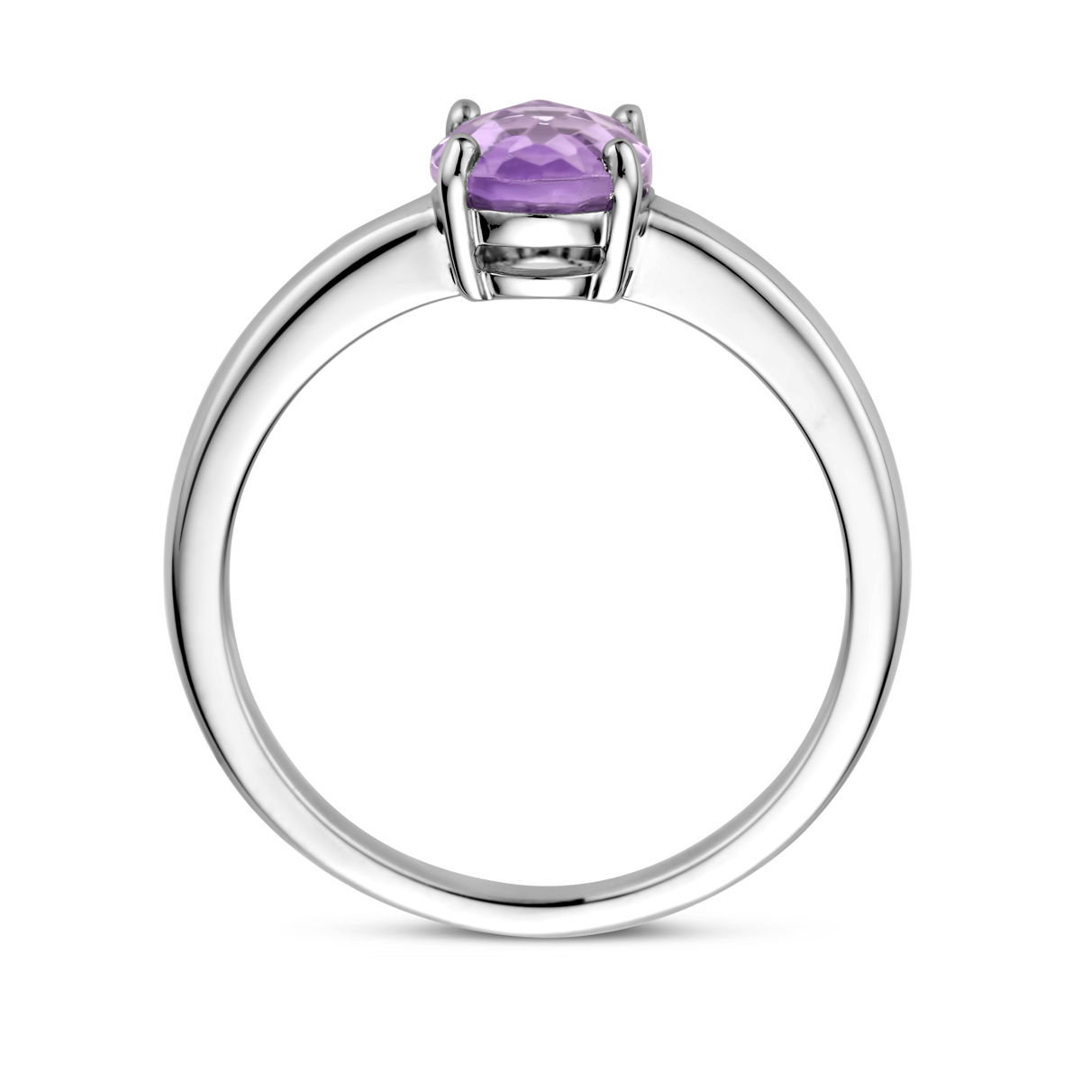 Gerhodineerd 925 zilveren ring uitgevoerd met amethist in maat 17 1/4. De ring heeft een breedte van 8mm.