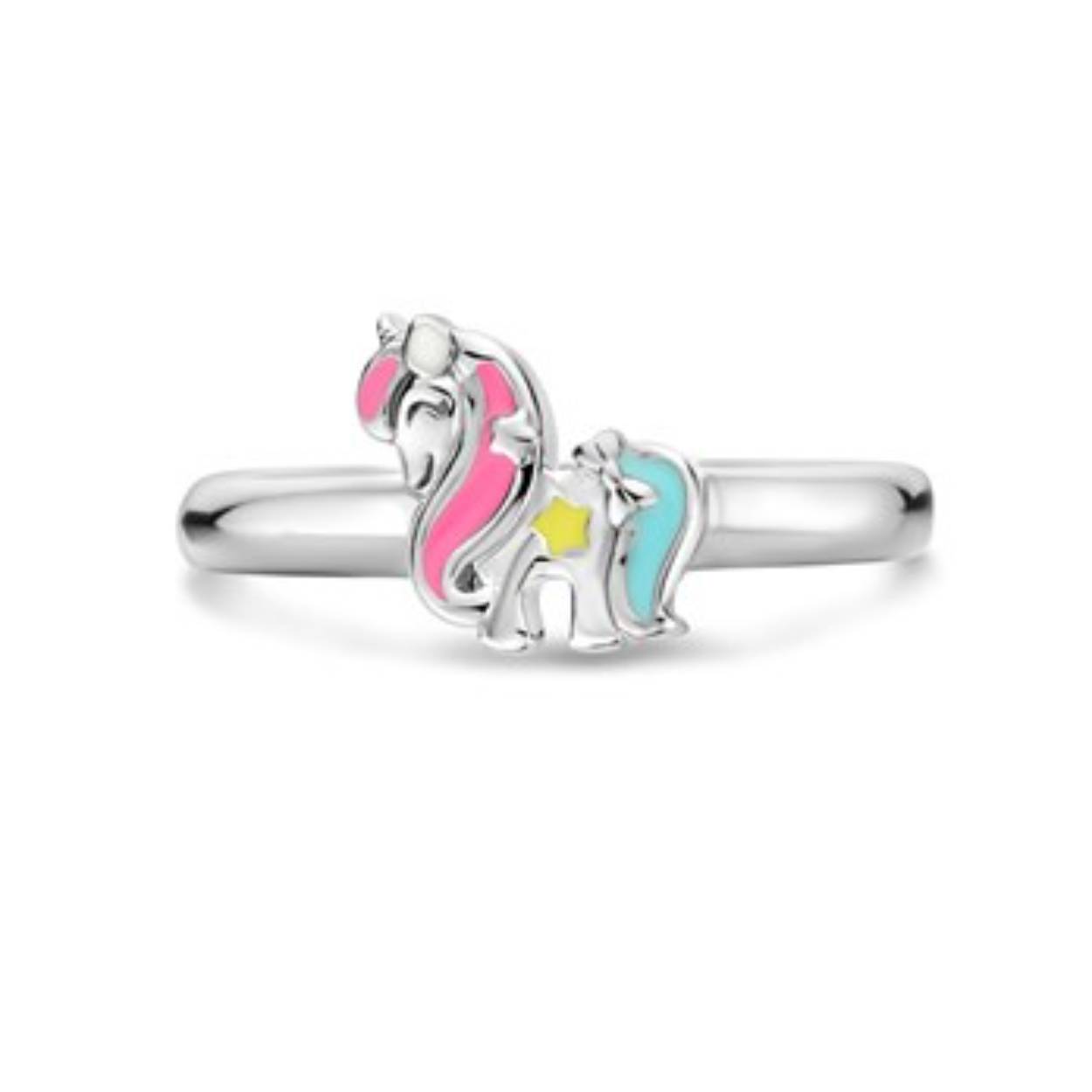 Gerhodineerd 925 zilveren ring uitgevoerd met een eenhoorn. De ring heeft een breedte van 7.5mm.