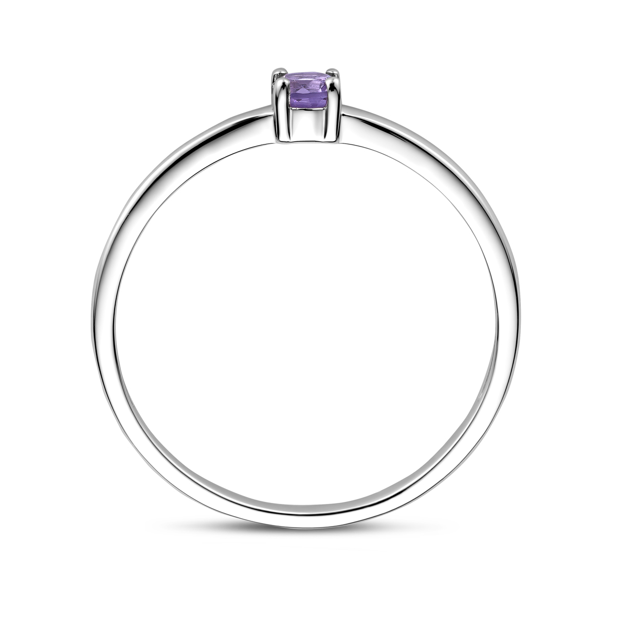 Gerhodineerd 925 zilveren ring uitgevoerd met een schitterende licht amethist, geboortesteen van de maand juni.