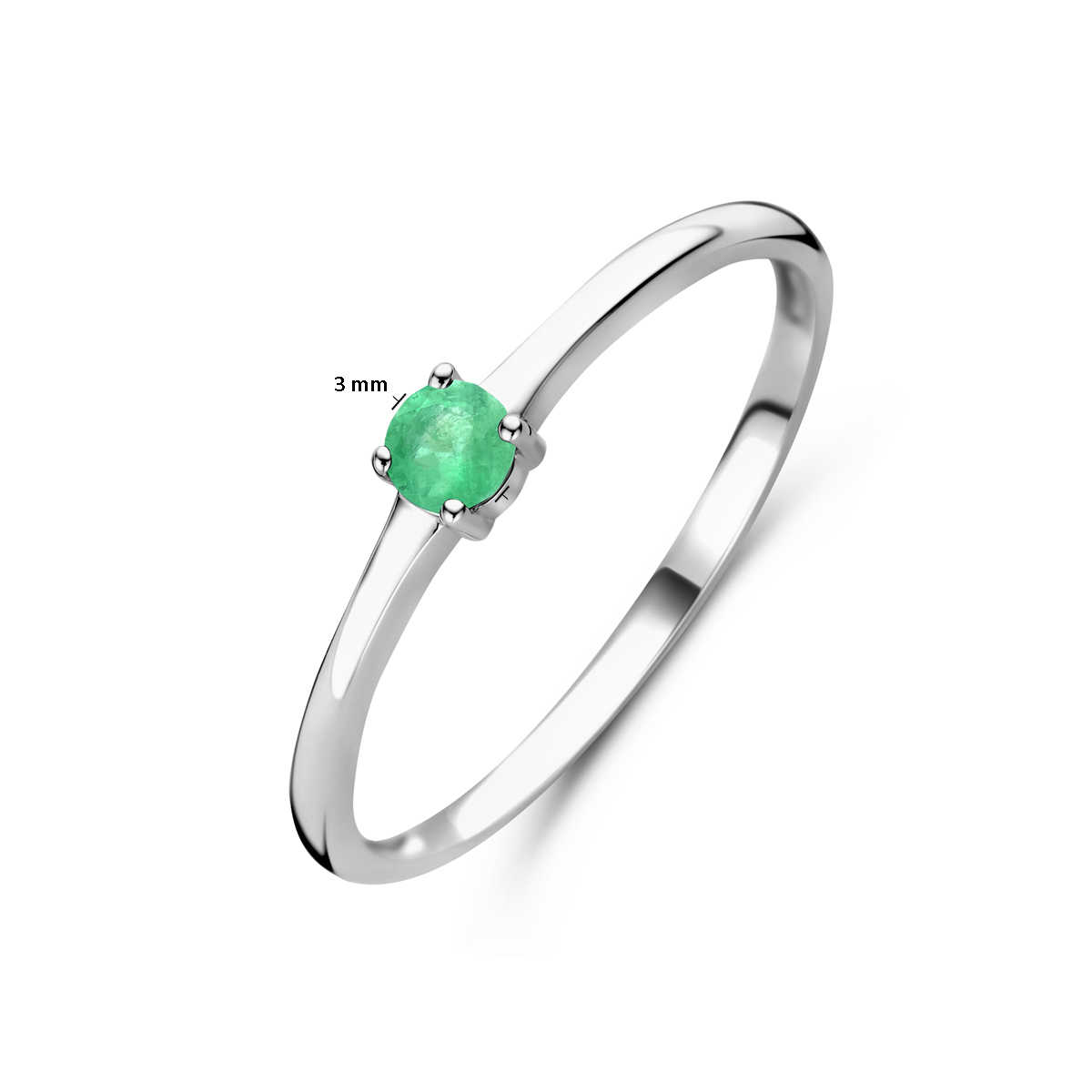 Gerhodineerd 925 zilveren ring uitgevoerd met een schitterende smaragd, geboortesteen van de maand mei.
