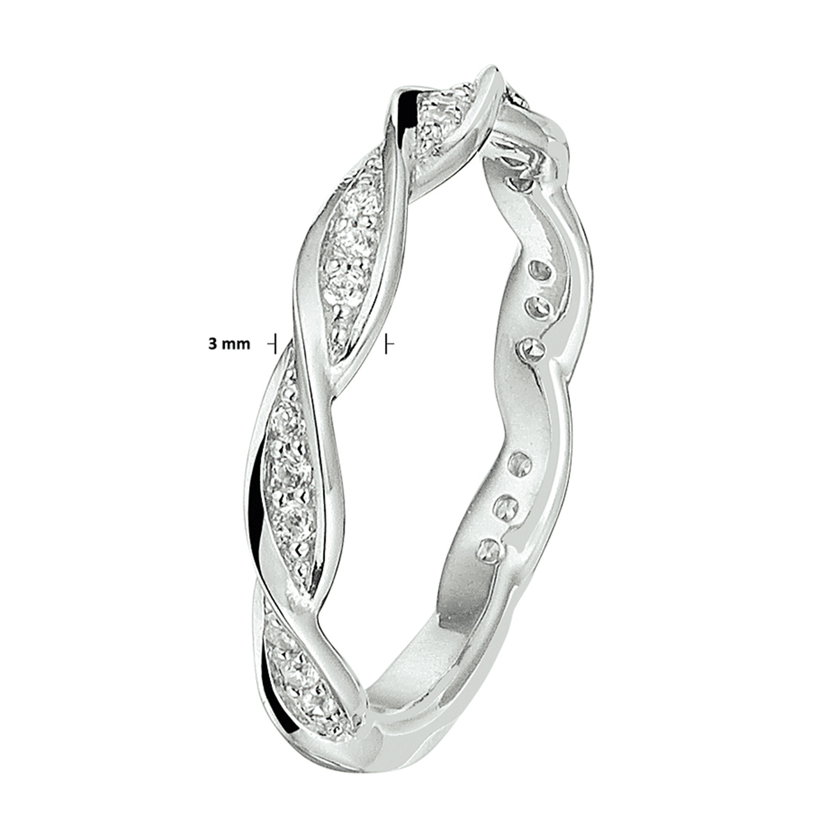 Stijlvolle gerhodineerd zilveren ring met schitterende zirkonia rijen.