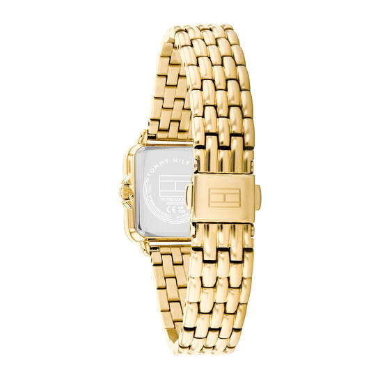 Tommy Hilfiger dameshorloge Mia met goudkleurige band, kast en wijzerplaat