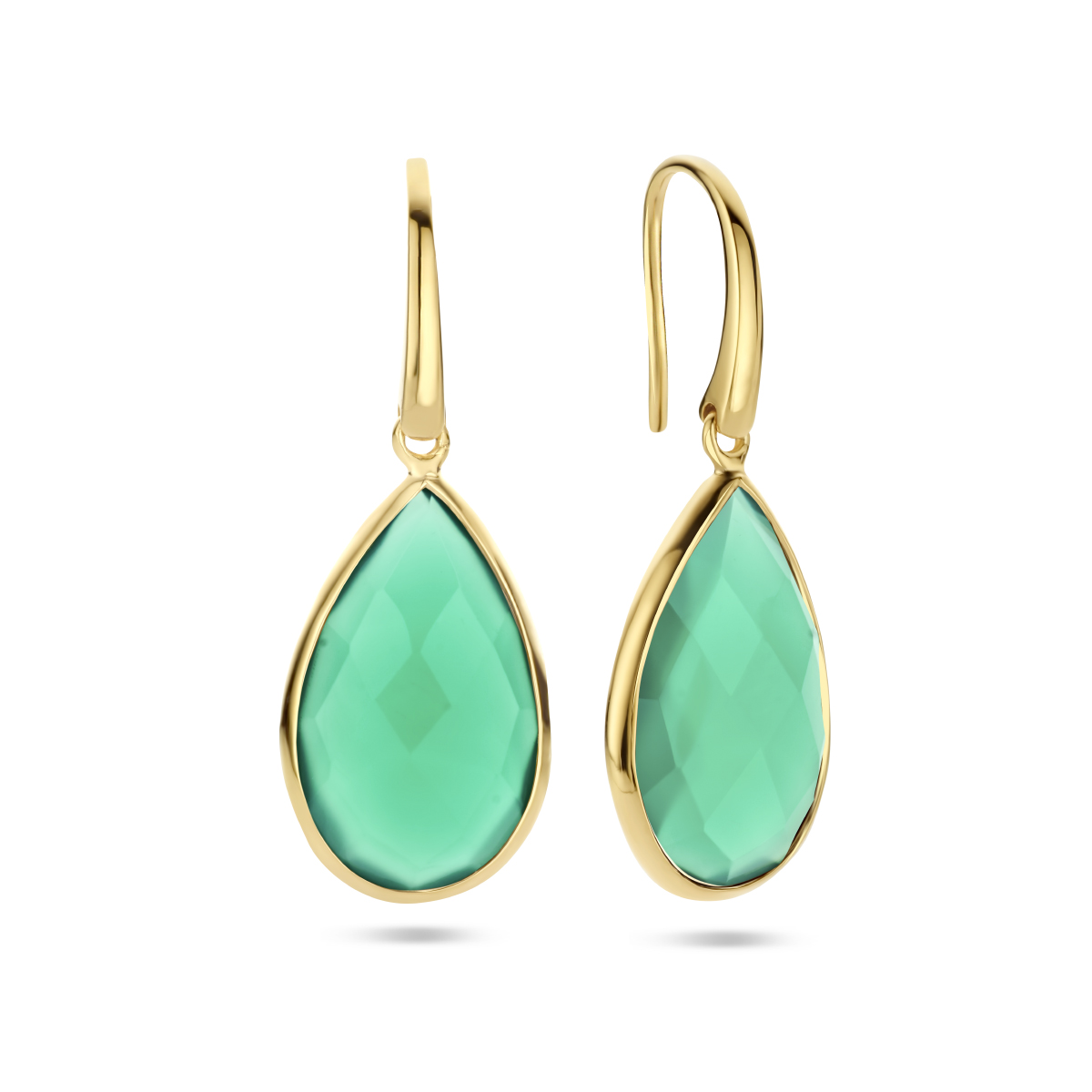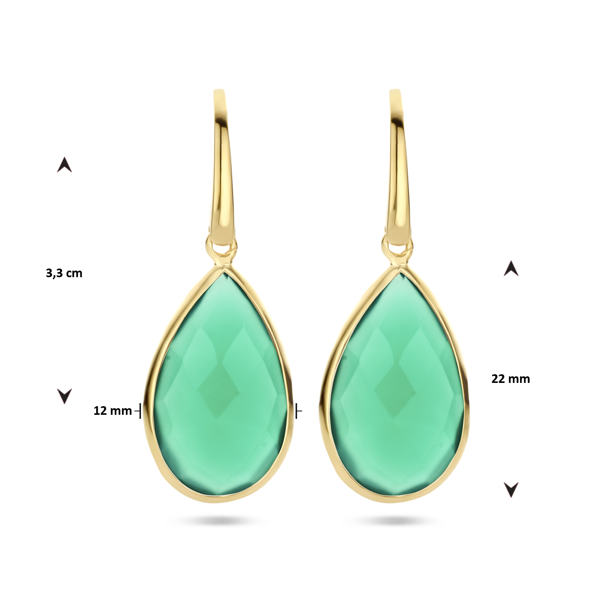 Verguld op 925 zilveren oorhangers Franse haak uitgevoerd met groene agaat. Geen garantie op plating.