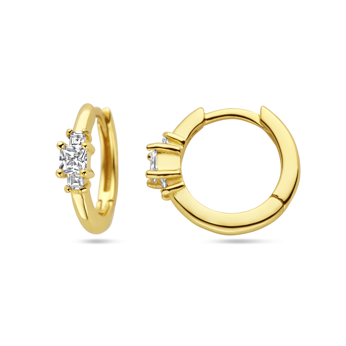 Zilver vergulde klapoorringen uitgevoerd met zirkonia. De klapoorringen hebben een afmeting van 12x3.5mm.