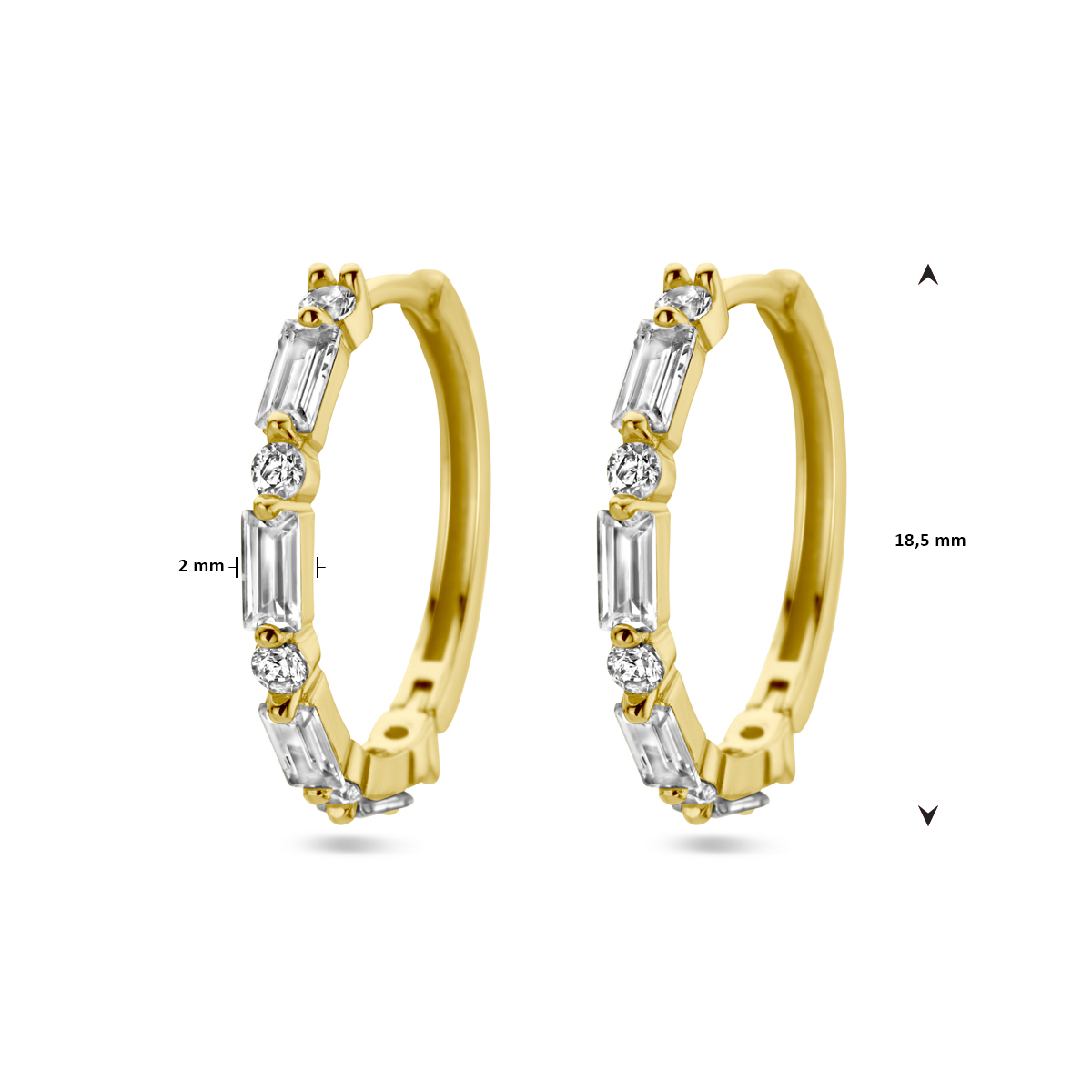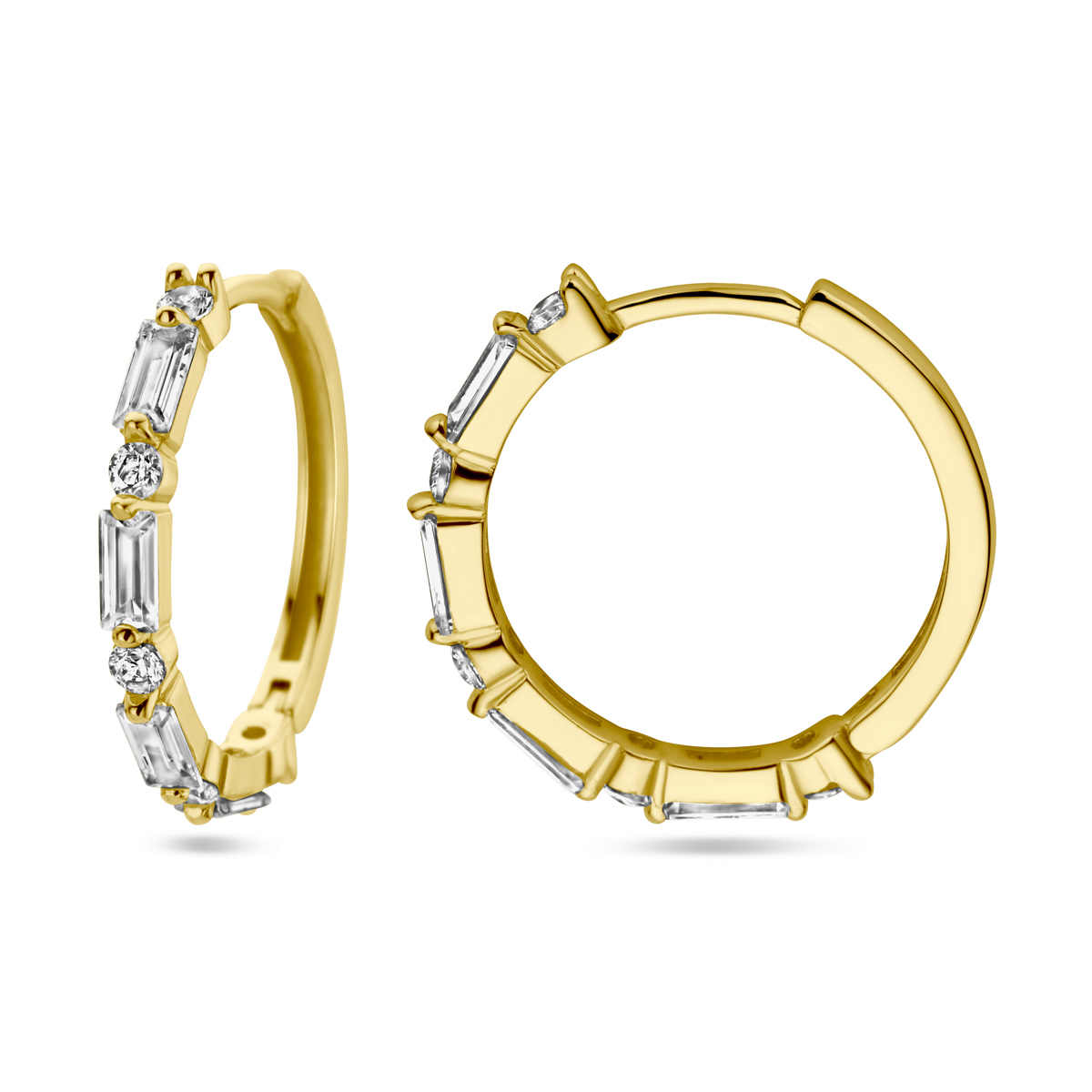 Zilver vergulde klapoorringen uitgevoerd met zirkonia. De klapoorringen hebben een afmeting van 18.5x2mm.