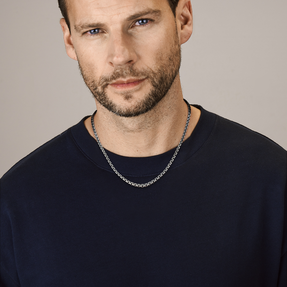 Geoxideerd zilveren herencollier met een schakelbreedte van 3,5mm en een lengte van 50cm. Uitgevoerd met karabijnsluiting.